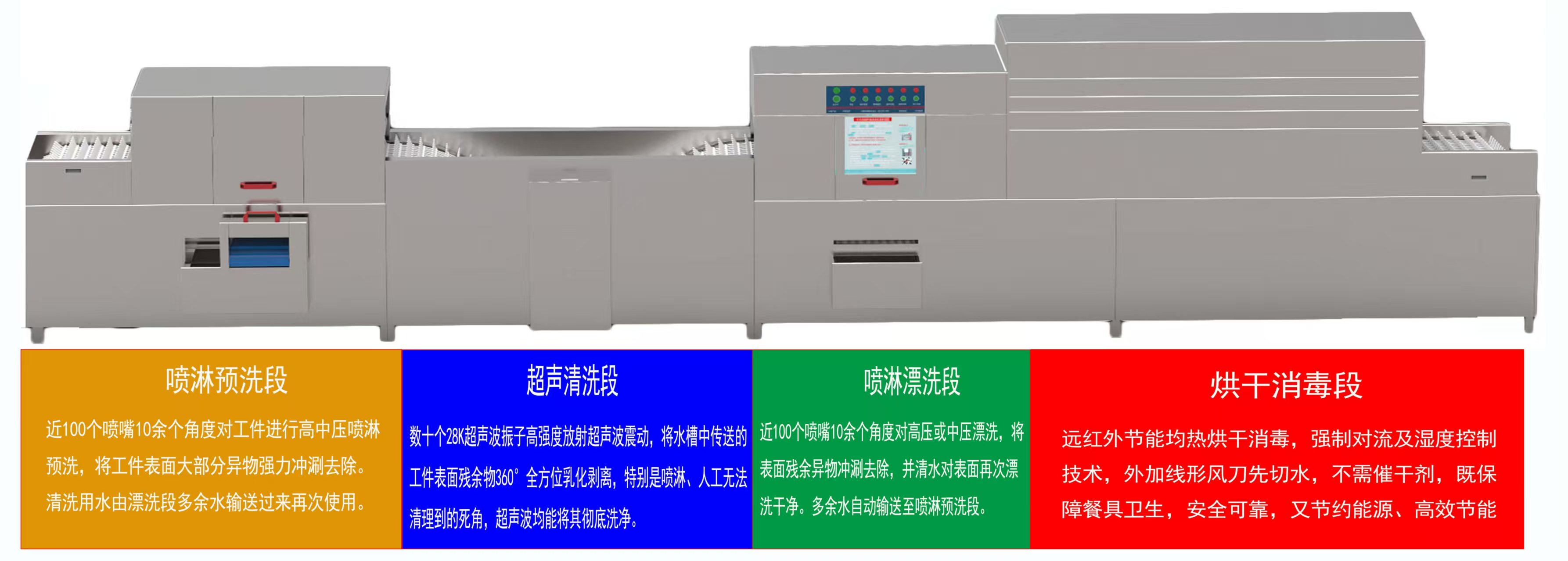 全自動(dòng)超聲波洗碗機(jī):為中央廚房量身打造的高效 上超全自動(dòng)超聲波洗碗機(jī)核心清洗流程:為您帶來(lái)的運(yùn)營(yíng)價(jià)值:我們致力于為團(tuán)體食